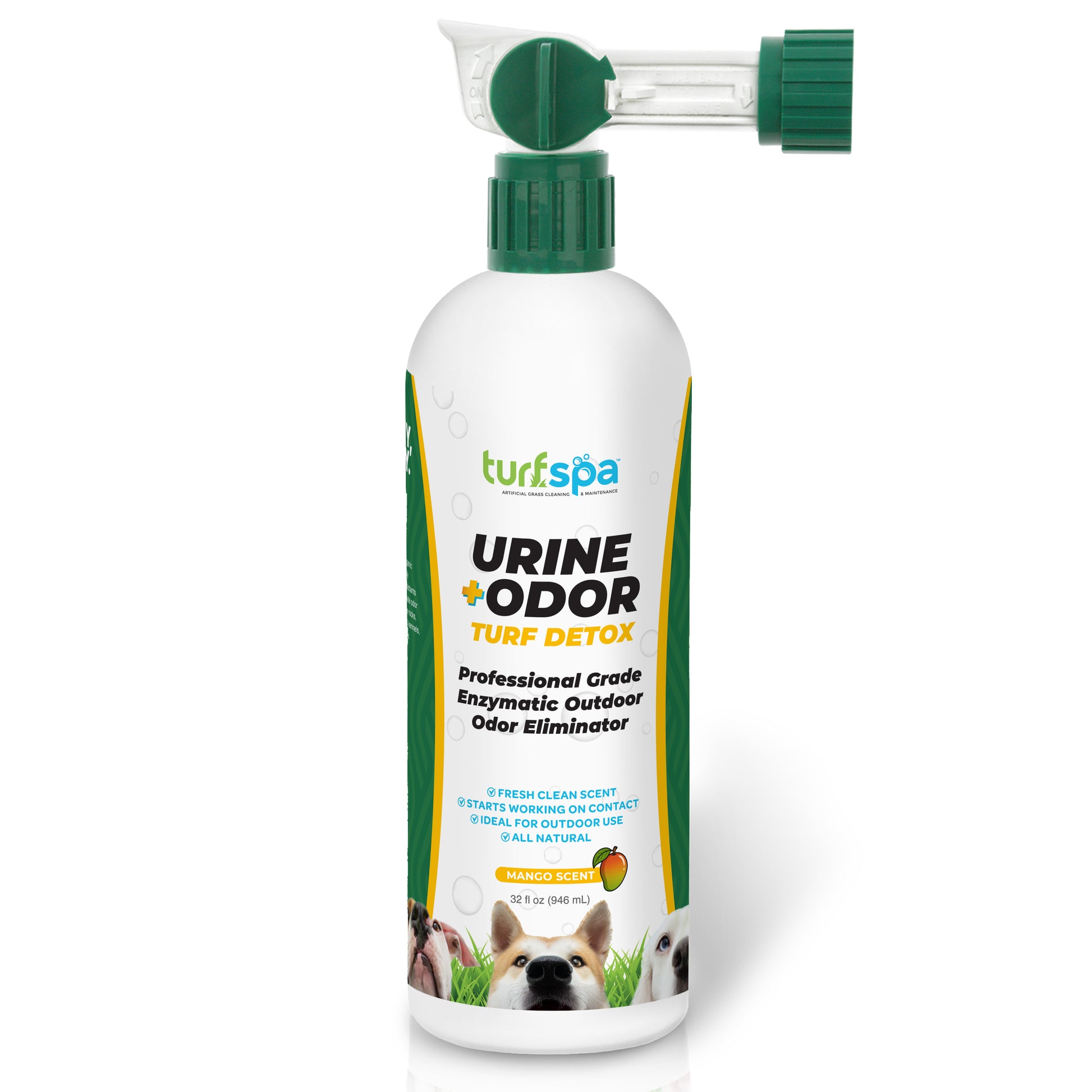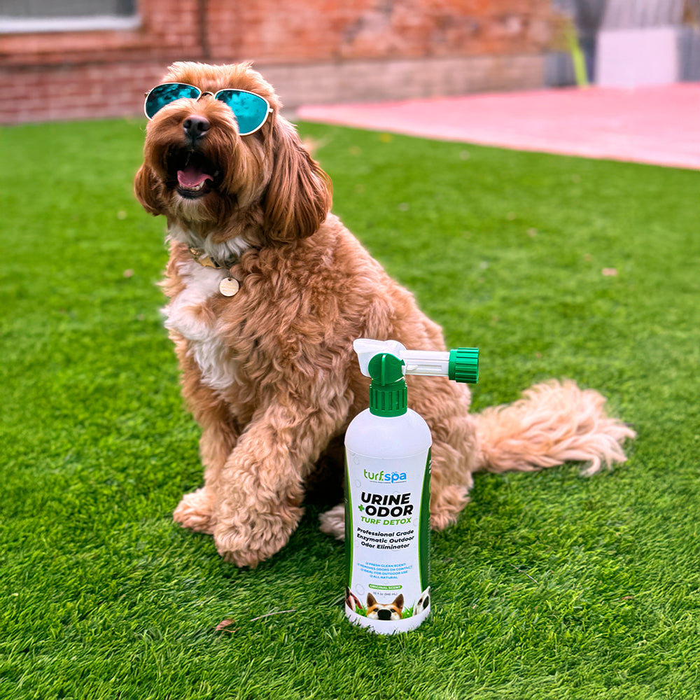 Your lovable pooch is throwing his own private pee party in your yard every day and the horrific odor is enough to make the chicken wings on the grill fly away. TurfSpa Urine + Odor Turf Detox is the solution you've been searching for!